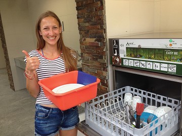 Dishwashing by hand on the camp site wastes too much time, water and energy. The Easy Be dishwashing service is the solution to these wastes: All campers clean and dry dishes every day in 5 minutes and our camp sites save enormous amounts of water and energy. Over 100 camp sites in 13 European countries run our service with a very high customer satisfaction. The leaders in the market are our customers. Season 2019 we have run 600.000 dishwashing runs.