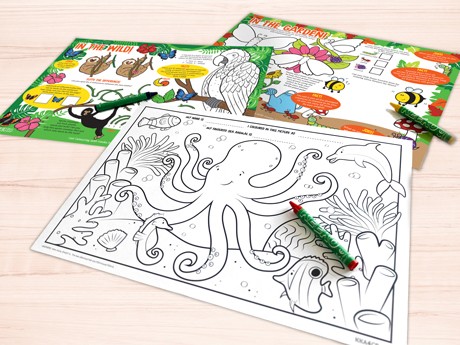 Our fun filled kids activity packs, colouring sheets, booklets and lunch bags are a perfect alternative to the Keeko colouring board concept. Ideal for venues with food on the go, or for those who want to offer something fun and engaging for their younger customers. Our generic activity sheets are available in a range of wildlife themed designs and have space for you to add your logo or menu. All our kids activity packs have the option to be branded and personalised (minimum order quantities apply). Get in touch today for a tailor made quote for your business!